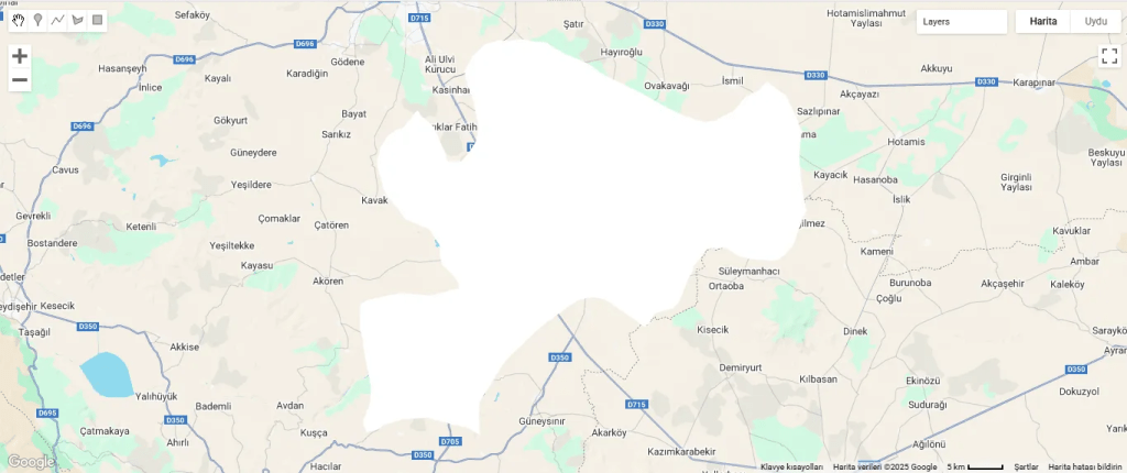 Now, we will use the point we assigned to extract the Çumra district border from the global district border data. In other words, we will extract the one that overlaps with this point from among all district borders. In this way, we will only have the Çumra district border.