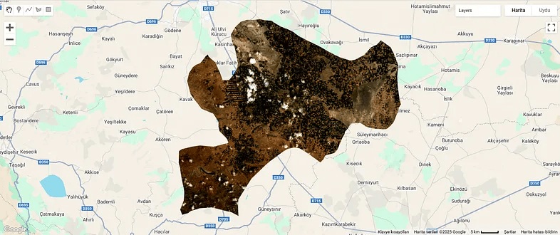 In addition to the image, let’s add the Çumra district border polygon to the map.
